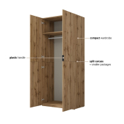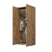 Šatníková skriňa MONTANA v modernom odtieni dub Wotan 24N0OL18 prináša praktické a štýlové riešenie úložného priestoru pre spálne, detské izby alebo predsiene. Táto dvojdverová skriňa s klasickým otváraním na pántoch je dostupná v troch moderných farebných variantoch, takže si ju ľahko prispôsobíte svojmu interiéru.