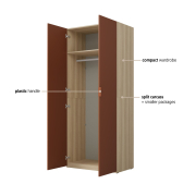 V hornej časti skrine sa nachádza polica, pod ňou je vešiaková tyč ideálna na košele, kabáty alebo šaty. Do spodnej časti je možné dokúpiť ďalšiu policu 87x48x2 cm(odtieň v dekore linen) a zväčšiť tak úložný priestor podľa potreby. Skriňa je vybavená praktickými plastovými úchytkami, ktoré uľahčujú otváranie dverí.
