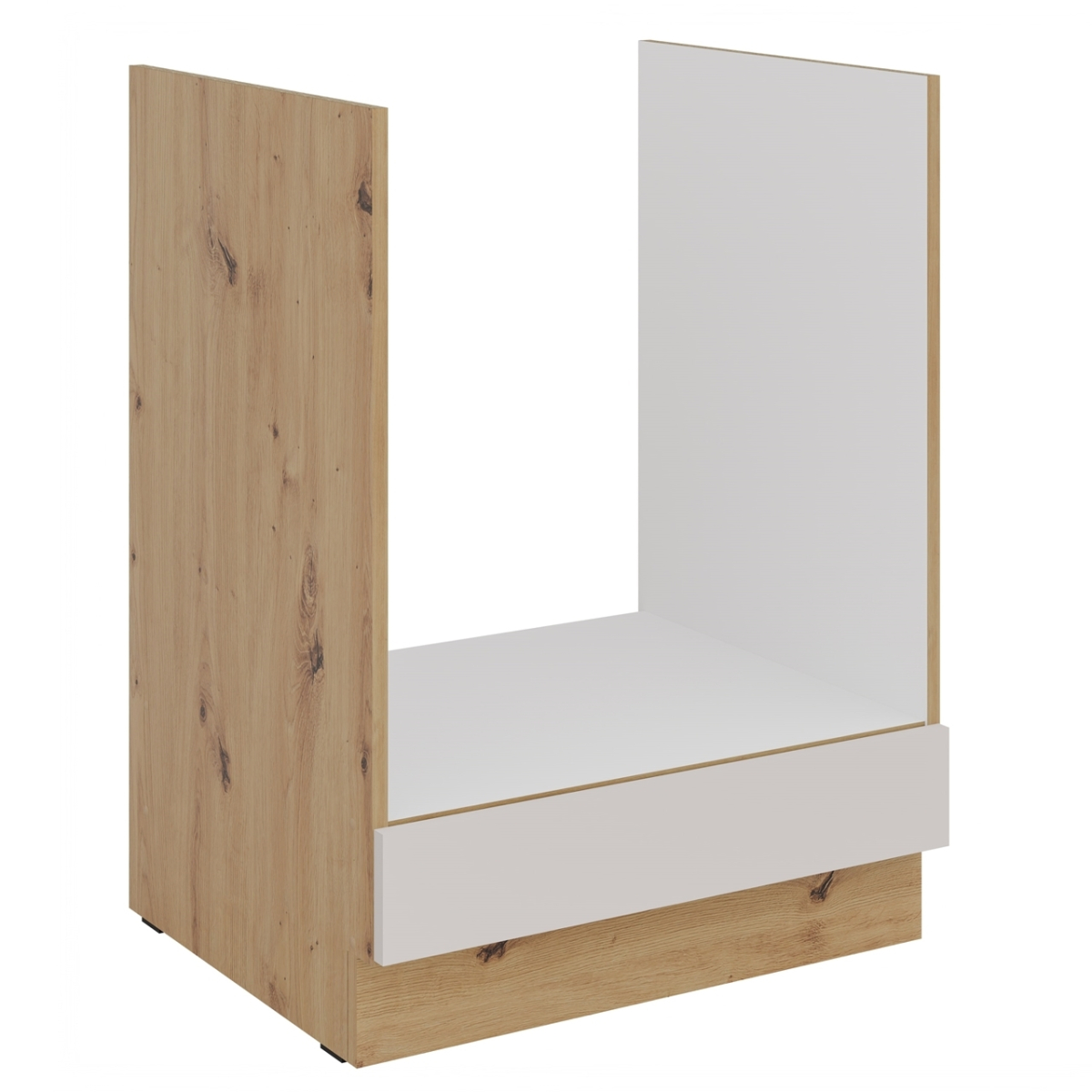 Skrinka SOLEA 60 D GAZ BB je určená na zabudovanie rúry. Dvierka v odtieni Kašmír sú pevné a nedajú sa otvárať, čo umožňuje bezpečnú a stabilnú inštaláciu spotrebiča. Korpus v dekore Dub Artisan pôsobí elegantne a nadčasovo a harmonicky dopĺňa ostatné skrinky SOLEA.