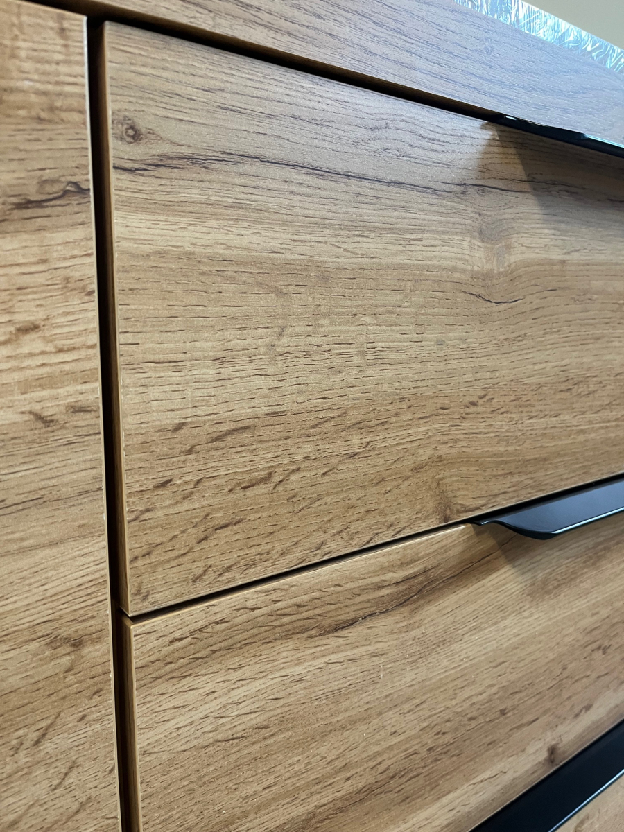 Detaily - predné plochy a dvere s hrúbkou 16 mm sú doplnené o odolné ABS hrany, ktoré chránia nábytok pred mechanickým poškodením.