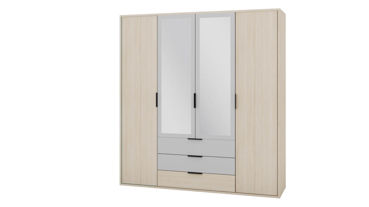 Krásna spálňová zostava RYGA. Farebné prevedenie dub riva - šedá jasná. Materiál na výrobu korpus a dvierka - certifikovaná laminovaná drevotrieska, odolná voči poškriabaniu a ÚV žiareniu. Skriňa so zrkadlom a tromi výsuvnými šuflíkmi, posteľ v rozmeroch 140x200 cm a 160x200 cm spolu s 2x nočným stolíkom a 2x výsuvnými šuflíkmi ako úložný priestor. Na výber sú aj dve komody a praktický regál.