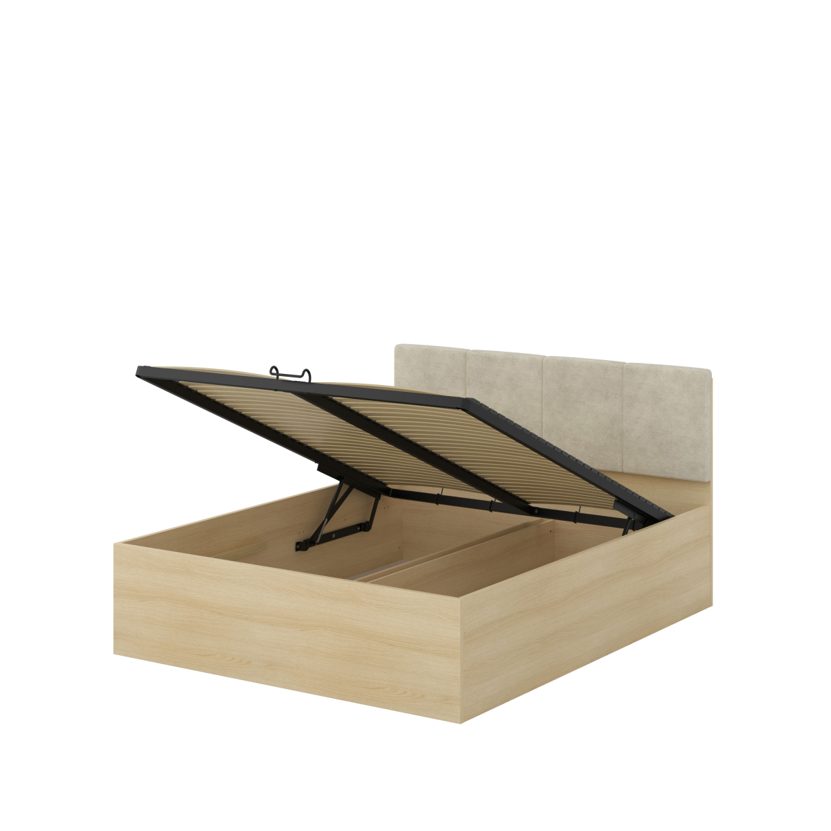 Postele s úložným priestorom - robustná konštrukcia v dekore duba lindberg poskytuje stabilitu a skrytý priestor na sezónne veci.
