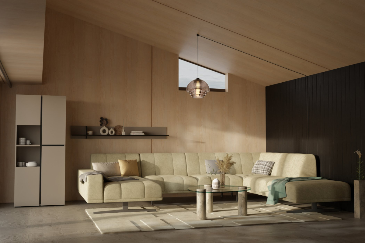 Vzdušný dizajn: Vďaka štíhlym, no extrémne pevným kovovým nohám sedačka pôsobí, akoby sa vznášala. Tento detail ocenia najmä majitelia podlahového kúrenia a robotických vysávačov.