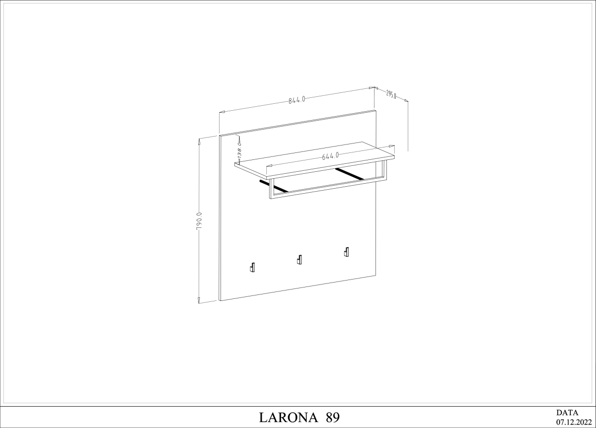 Sektorový nábytok do predsiene LARONA - vešiak 89, vo farebnom prevedení sibiu larche - sonoma trufel / 244BDZ ../s krásnou kresbou dreva osloví nejedného milovníka moderného, originálneho interiéru. Chodbová zostava LARONA je praktický predsieňový nábytok, s ktorým ľahko zariadite vašu predsieň alebo chodbu. Materiál je kvalitná certifikovaná laminovaná drevotrieska v kombinácii fóliou na MDF. Hrany sú olepené ABS páskou, úchytka plastová.