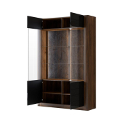 Moderný sektorový nábytok od firmy IMS HELVETIA KASAI - vitrína 12. Obývací sektor KASAI bol navrhnutý predovšetkým pre náročných zákazníkov, ktorí uprednostňujú vysokokvalitné materiály použité na jeho výrobu, výborný prepracovaný dizajn a naozaj jednoduchý variabilný súbor jednotlivých prvkov. Farebné prevedenie orech columbia-čierny lesk . Materiál použitý na výrobu je certifikovaná drevotrieska, na korpusoch lamino ohranené ABS, dvierka sú potiahnuté vysokokvalitnou fóliou - membránou v kombinácii s fóliou nalepenou na MDF. Dominantné nohy sú masívne kovové, pochrómované, bezúchytkový systém PUSH TO OPEN, zásuvky s plným výsuvom, dvierka a zásuvky sú vybavené systémom pomalého zatvárania, sklo na vytrínach je zakalené, možnosť doobjednať LED osvetlenie.