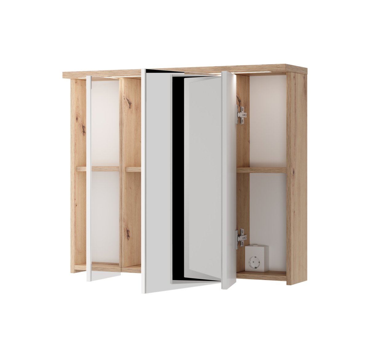 Kúpeľňový nábytok STING - zrkadlo 3D č.58, moderný sektorový nábytok do kúpeľne vyrobený vo výbornej kvalite prevedenia. Farebné prevedenie dub artisan - biely lesk. Materiál korpus - certifikovaná laminovaná drevotrieska, dvere - kvalitná fólia na MDF vo vysokom lesku.